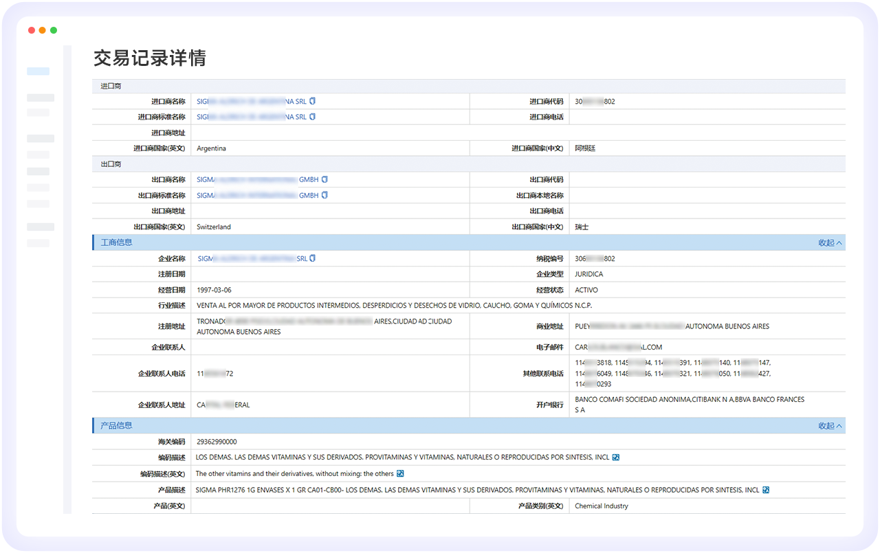 • 全球贸易记录一键检索
